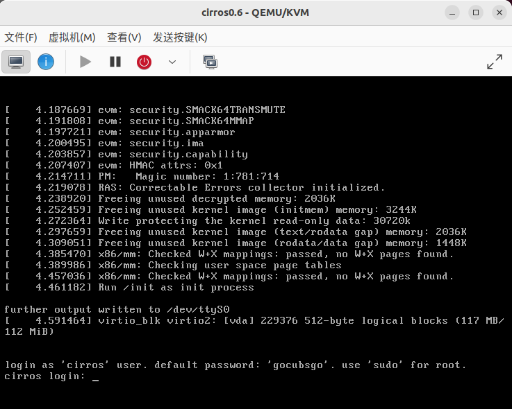 virt-manager 会打开虚机 kvm1 的控制台窗口,可以看到启动情况