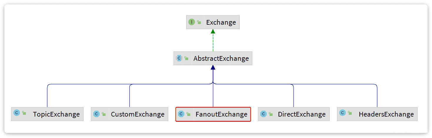 SpringAMQP还提供了一个Exchange接口,来表示所有不同类型的交换机:
